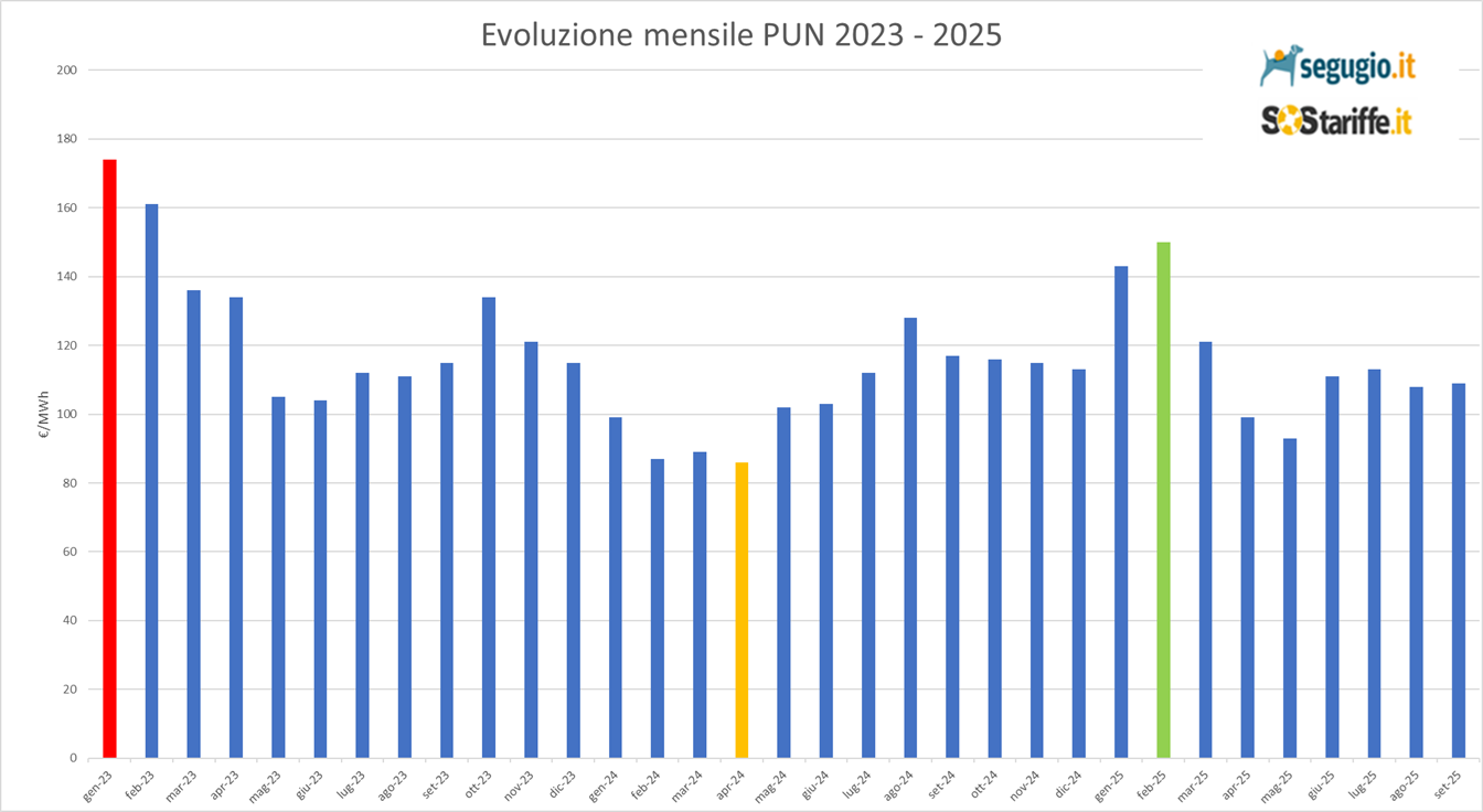 | PUN Settembre 2025 | 0,109 | 0,109590 | 0,120930 | 0,101880 | 0,110643 |
